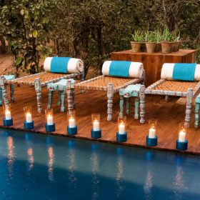 The Taj Safari Lodge in Baghvan has a delightful infinity pool shaded by trees and overlooking the forest. A tiny cottage across the safari shop houses a small library, computer and a television for guests, with the adjacent room being a tasteful serene space for massage treatments.