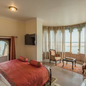 Palace offers 32 artistically designed with character, traditionally adorned drapes. The furniture and rugs go very well with character of the rooms an suites. The palace has River View and City view rooms and some of the rooms come with private terrace.