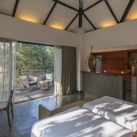 Luxury Room with Private Balconies: Opening out onto views of the picturesque horizon, the four well-appointed rooms at KAAV reflect the ethos of untamed luxury. They are thoughtfully designed to ensure every comfort while mindful of leaving the nature that surrounds you unblemished.