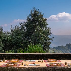 In the high mountains of Kumaon next to the Binsar Wildlife Sanctuary, a haven for Himalayan wildlife and birds. Offering majestic views of the snow-capped Himalayan peaks.