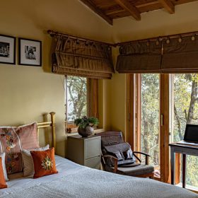 Dining: Both the cottages come with their own dining rooms, however there are plenty of opportunities to have your meals outdoors. The Wild Cat Brunch is a tribute to the leopard found in the forests and comes with live grills, hot pots and the season’s specials. Garden Lunch is the al fresco dining space where guests can come together for a meal. It is the perfect place to sample Kumaoni cuisine with vistas of some of the majestic Himalayan peaks for company.