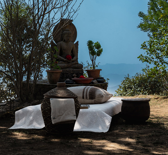 In the high mountains of Kumaon next to the Binsar Wildlife Sanctuary, a haven for Himalayan wildlife and birds. Offering majestic views of the snow-capped Himalayan peaks.