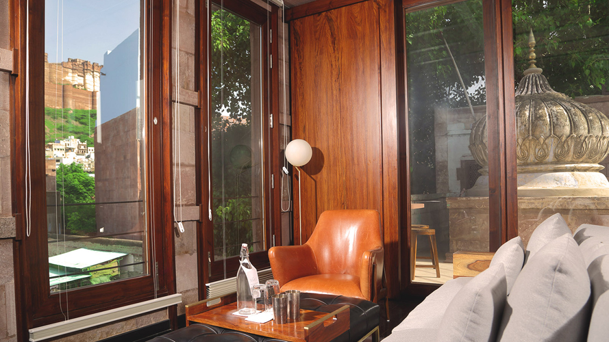 Heritage Suite: The most lavishly decorated suites are the three Heritage Suites, located in the original 18th-century Rajput residence. Whilst preserving the old-world charm of the mansion, these suites are equipped with all modern amenities to create a luxurious blend of historic and contemporary. The elevated platform in the front presents a stunning panorama of Mehrangarh Fort, while the back of the suite faces the splendidly landscaped hotel gardens.