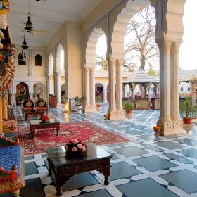 The Raj Palace (Originally Called “The Chaumoo Haveli” was built in 1727 and named after the last ruler of Chaumoo Thakur Raj Singh. In 1996 Princess Jayendra Kumari (Present owner) transformed it into a luxurious palace hotel while retaining its grandeur along with original artefacts from the bygone era.
