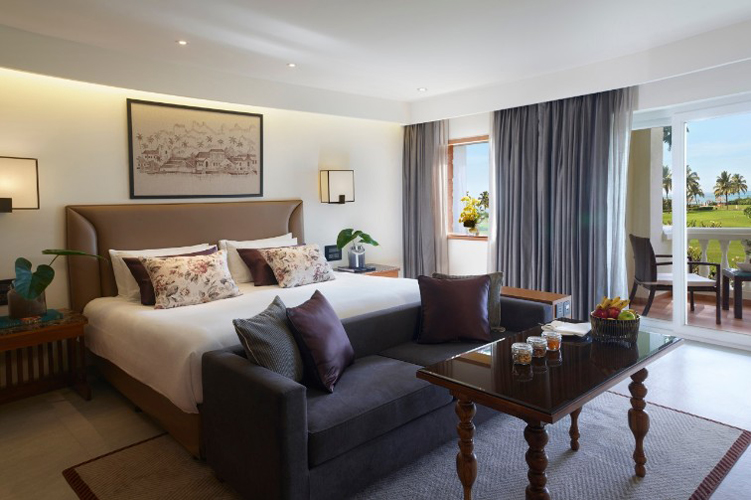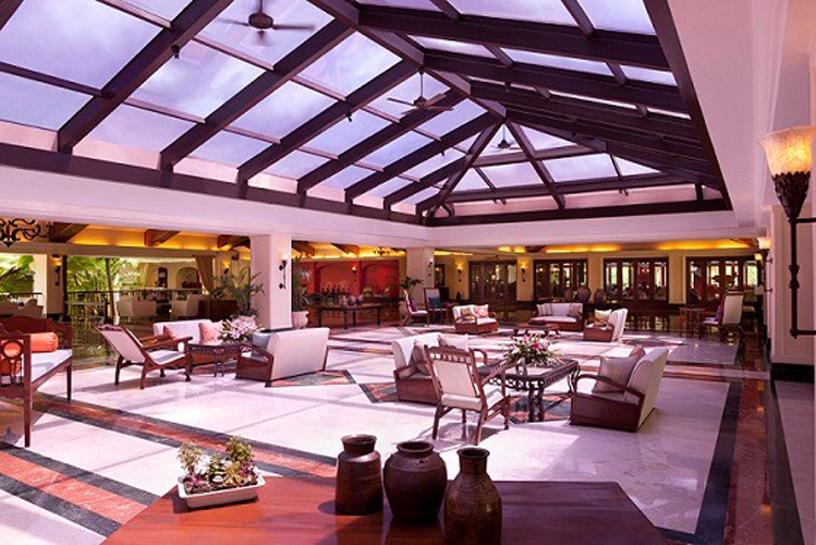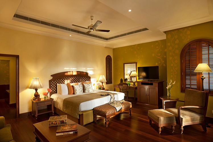 Taj Exotica Goa sprawls over 56 acres of lush greenery, and is divided into the main hotel building with large deluxe and luxury suites, and villa rooms. All this space coupled with old-world architecture, flower-lined patios and a sunshine-laden atrium make for a perfect romantic or family holiday.