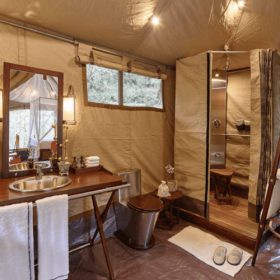 Tastefully designed and fully equipped, each tent comes with a private sit-out, as well as butler service. Vast and elegant, each tent has large netted windows, a writing desk with stationary, and fresh, crisp linens. En-suite bathrooms have their own shower cubicle, with hot and cold running water, a hair dryer, and Ayurvedic toiletries. Spacious wardrobes include a safe, and also come with thoughtful amenities like bedroom slippers, eye masks and ear plugs. Guests can also avail of our laundry service. Each tent also has its own mini-fridge, as well as tea and coffee making facilities.