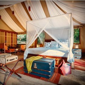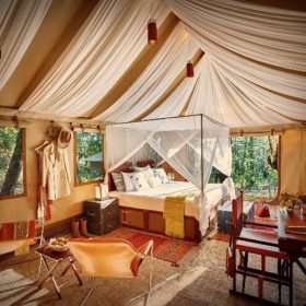 The Ultimate Travelling Camp offers a sophisticated canvas-top safari experience in the heart of Bandhavgarh. This luxury tented camp, called The UnTamed Bandhavgarh, is an ideal base to explore the beauty of Bandhavgarh Tiger Reserve.