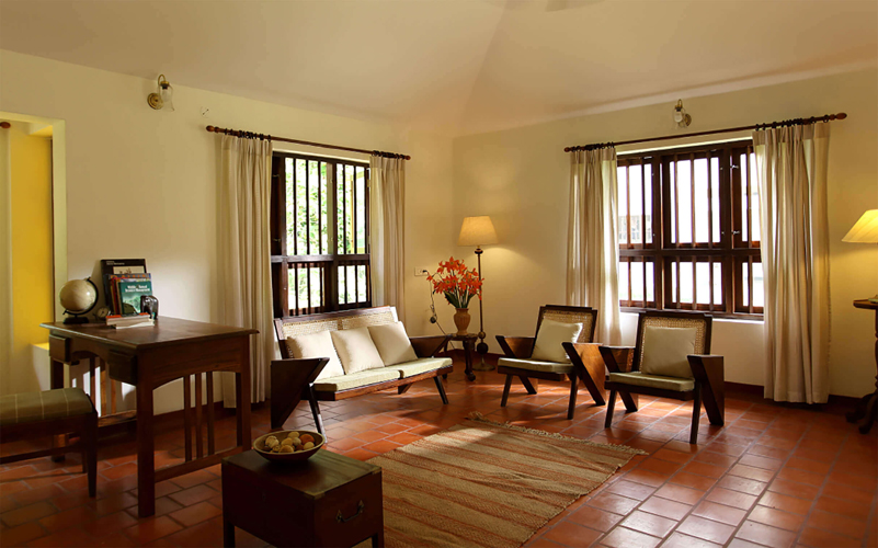 The River House echoes a stately old Colonial bungalow. The rooms are large, with soaring ceiling and furniture that have been customized and handcrafted on site, following the old traditions. The common spaces are thoughtfully arranged to balance camaraderie with privacy, and the home-styled meals are fashioned from the bounty of the land, with a little help from our own kitchen garden.
